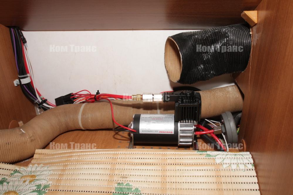 Кемпер на базовом шасси Ford Transit был оборудован фирменной вспомогательной пневматической подвеской. Водитель в зависимости от условий и количества перевозимого груза имеет возможность менять жесткость задней подвески.
