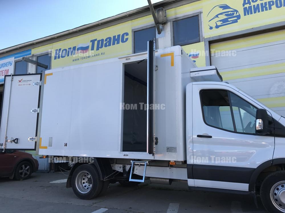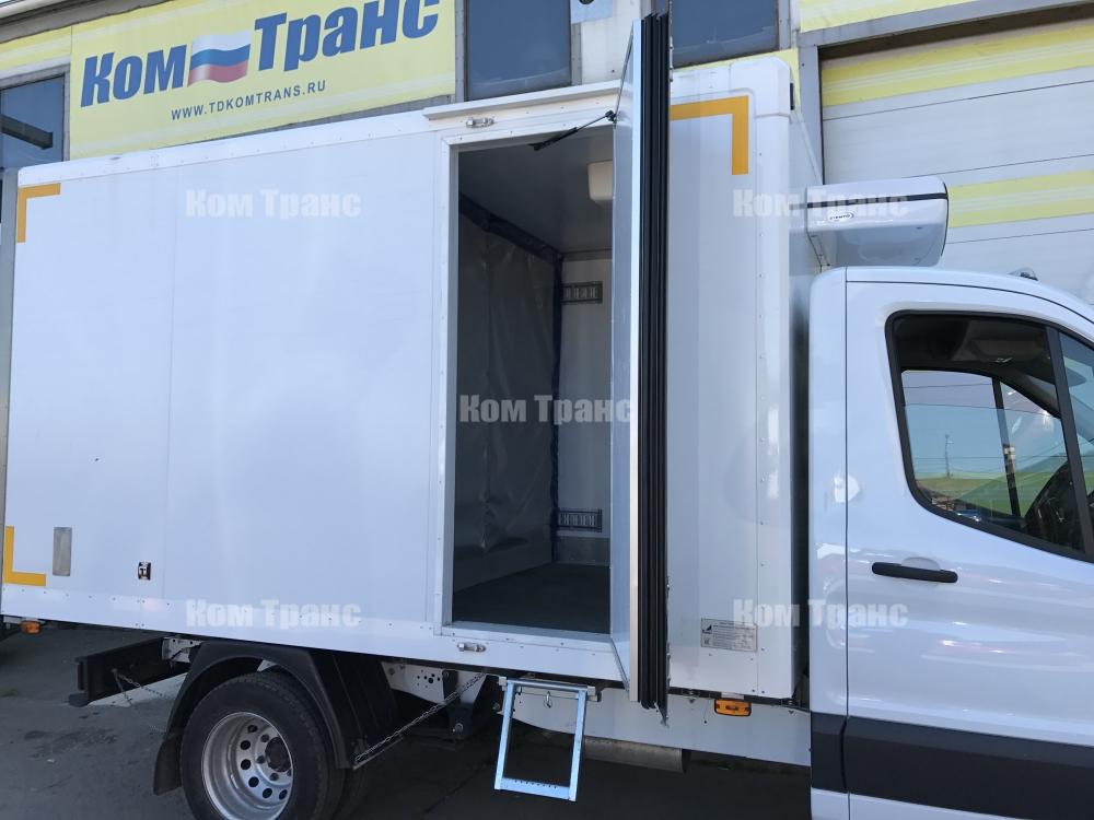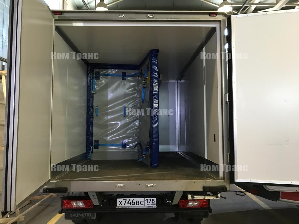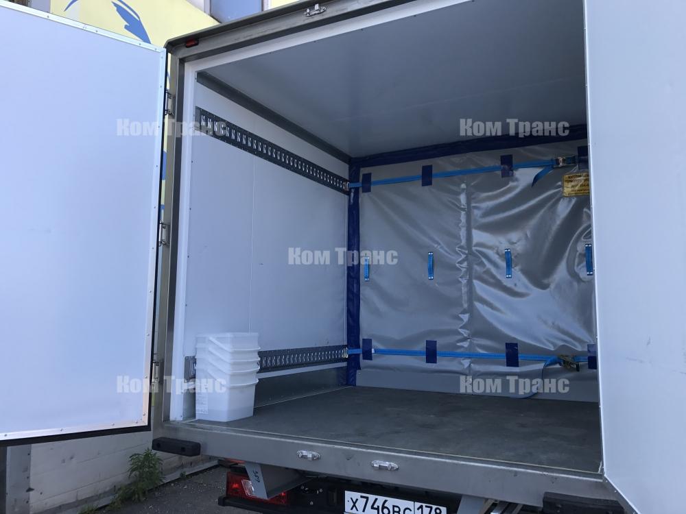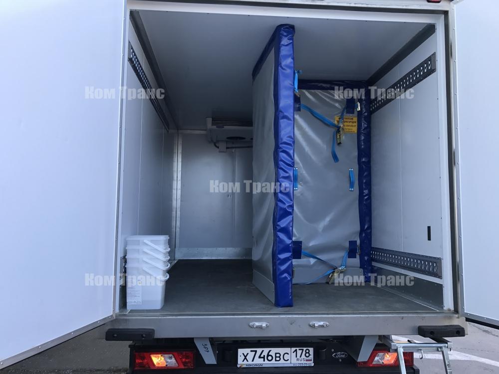 На автомобиль Ford Transit с изотермическим фургоном установлена быстросъемная изотермическая перегородка толщиной 100мм. Перегородка выполнена с комплектации "Стандарт". Данная перегородка предназначена для повышения эффективности рефрижераторной установки и увеличения ее ресурса. Заказчик перевозит кондитерские изделия из мороженного и при частичной разгрузки автомобиля сдвигает термоперегородку в сторону рефрижератора, тем самым сокращая охлаждаемый объем.